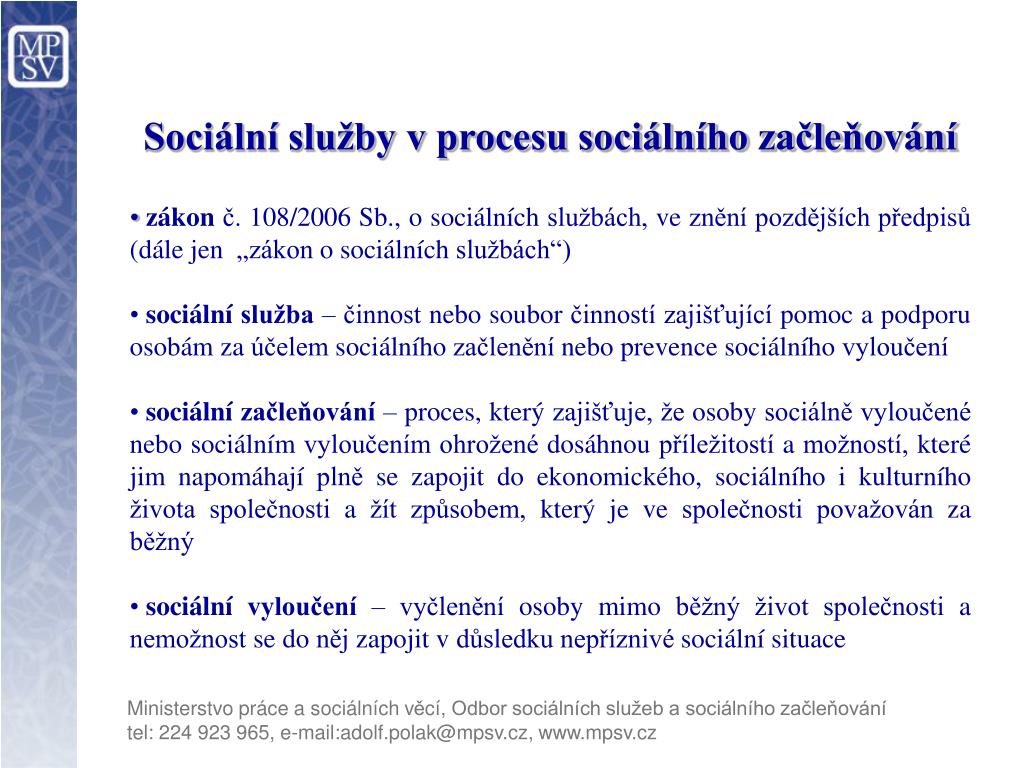 Lidovci převezmou mpsv ve složité situaci, myslí si jurečka. .. Sociální práce je profesí a akademickou disciplínou, která se zabývá uplatněním společenské teorie a výzkumu ke studiu a zlepšení kvality života lidí, sociálních skupin a celé společnosti.